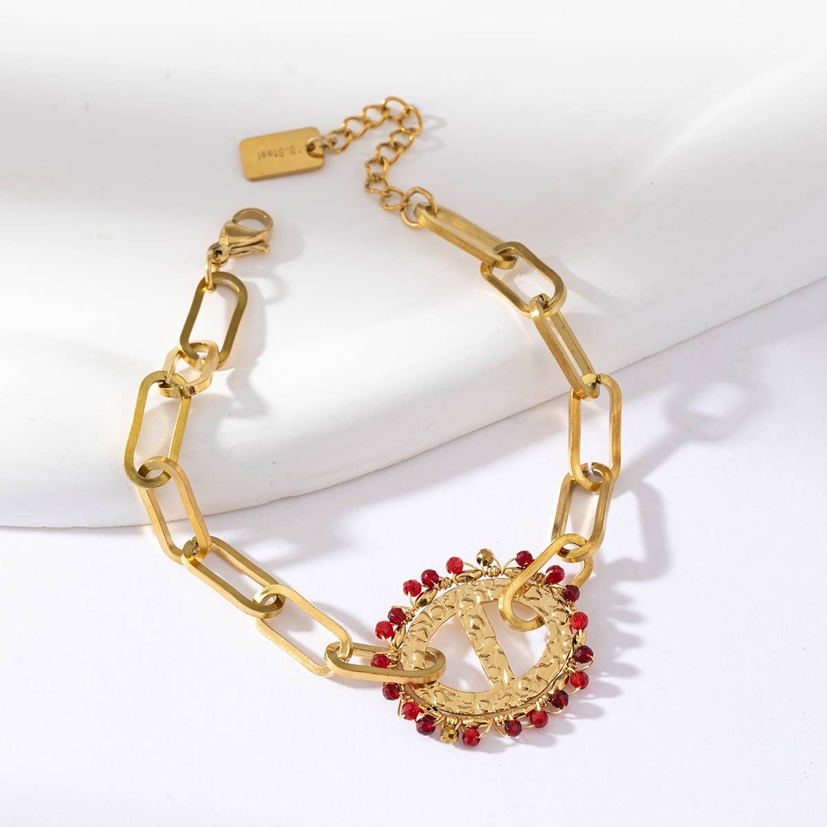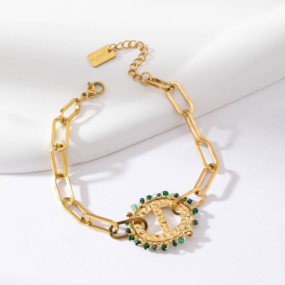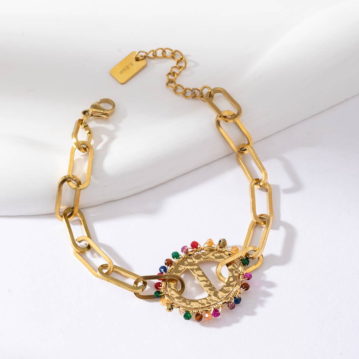 Bracelet chaîne simple avec un bijou ovale - Daphnée: Multicouleur / Tu [1]