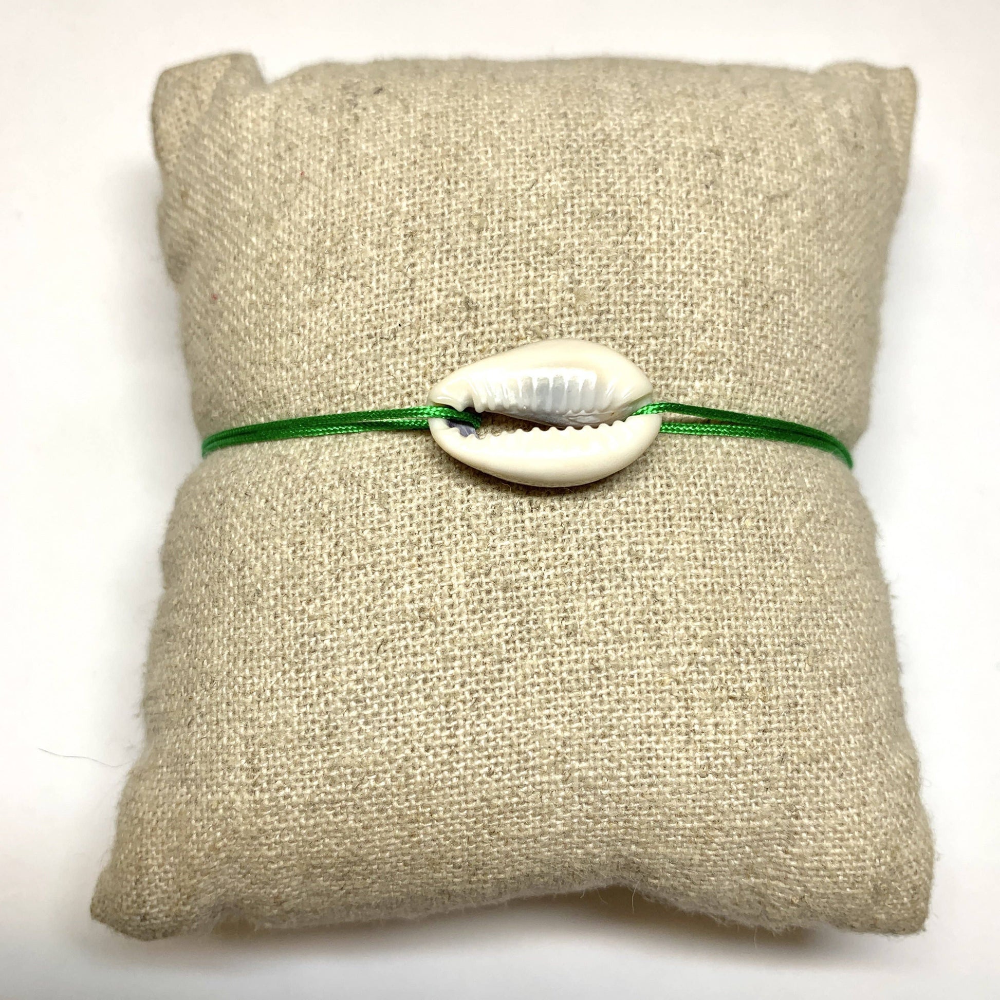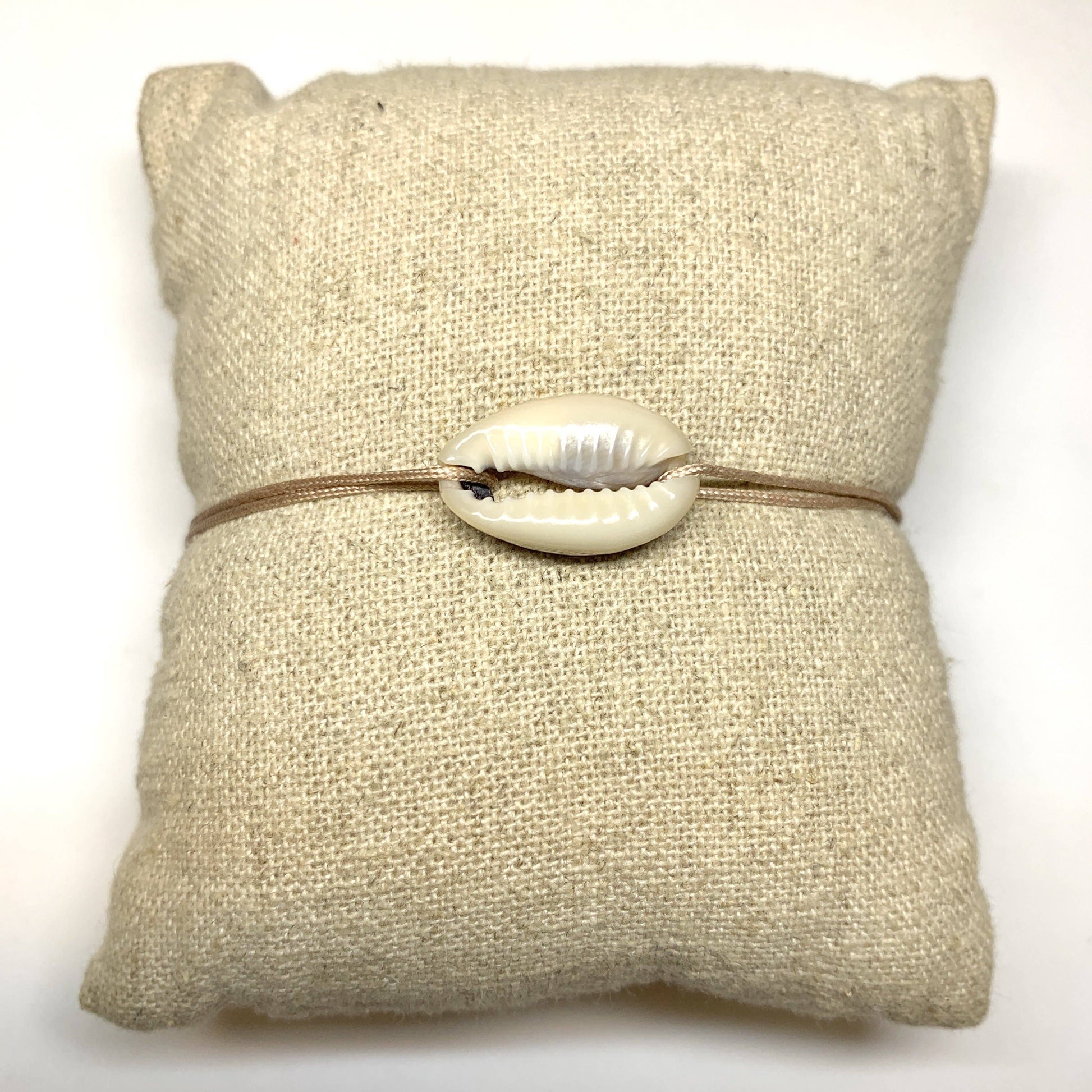Fabriqués avec un véritable coquillage cauri, ce bracelet vous accompagnera au fil du temps et de vos aventures. Celui-ci est composé d’un fil de jade et d'un coquillage naturel. Il s’attache à l’aide d’une fermoir coulissant et s'adapte donc à toutes les tailles de poignet.