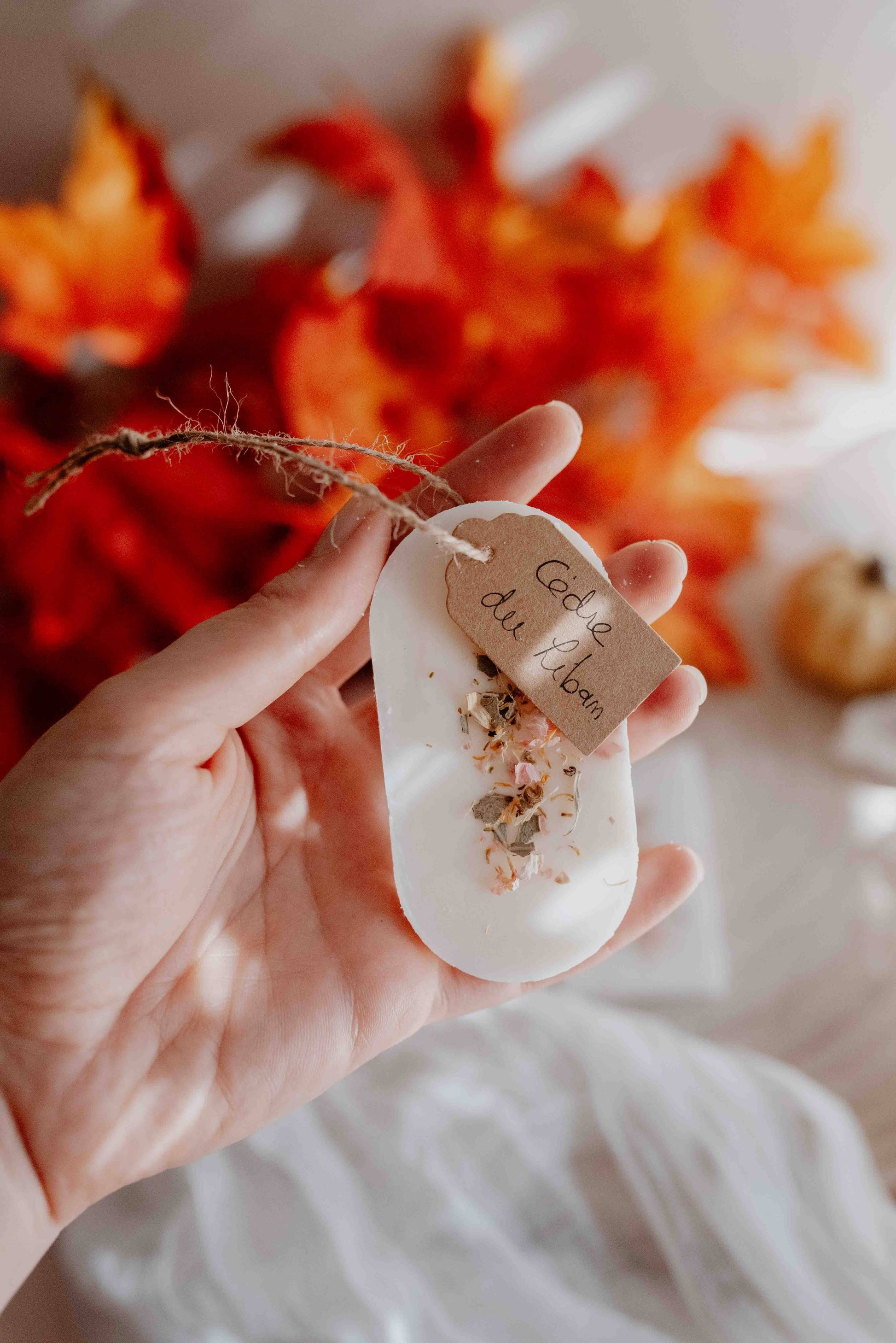 Chaque tablette est soigneusement emballée dans un pochon d'Organza puis son sachet kraft naturel.