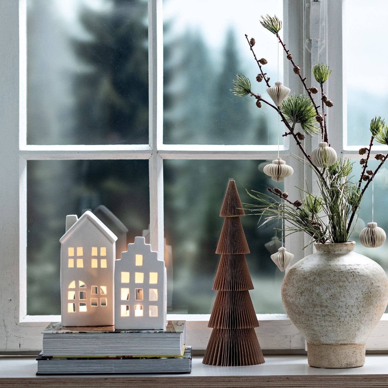 Maison photophore en céramique blanche (L/H/P) 10x18x6cm