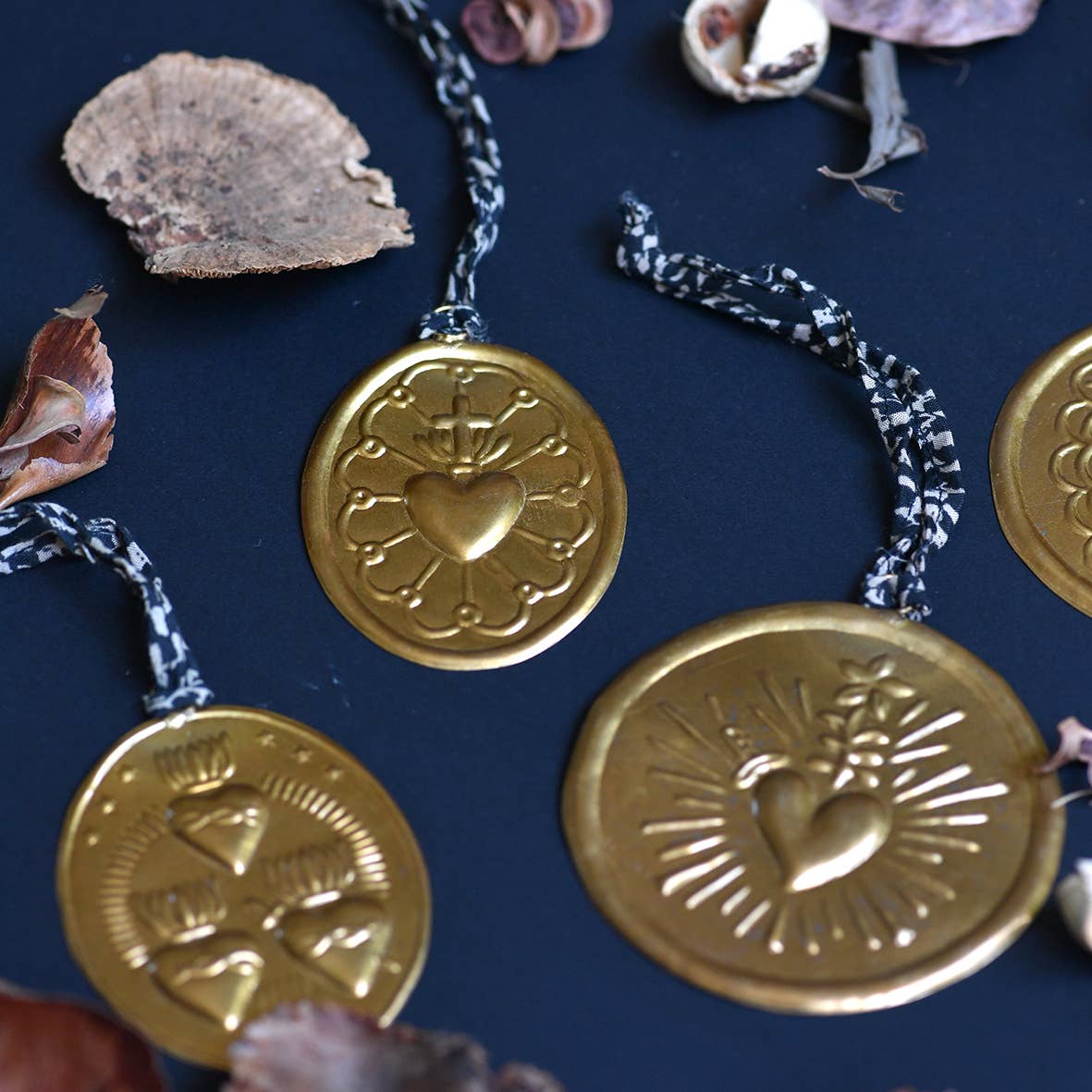 home decor - décoration intérieure - petite déco - brass decoration - Xmas decoration - decoration de Noel - Xmas - festival decoration - heart decoration - ornaments - Xmas ornaments - Xmas spirit - brass ornaments - vintage decor - antiques - déco montagne exvotos