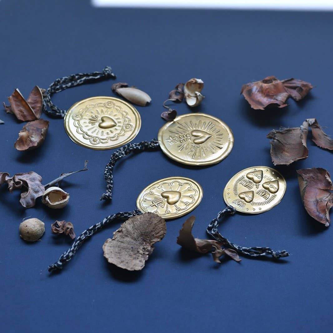 Très jolis médaillons décoratifs à suspendre partout ! Réalisés artisanalement en laiton recyclé, ils trouveront leur place en déco, en accumulation pour un esprit cabinet de curiosité, ou pourquoi pas comme embrasse de rideau pour apporter une touche deco élégante et raffinée