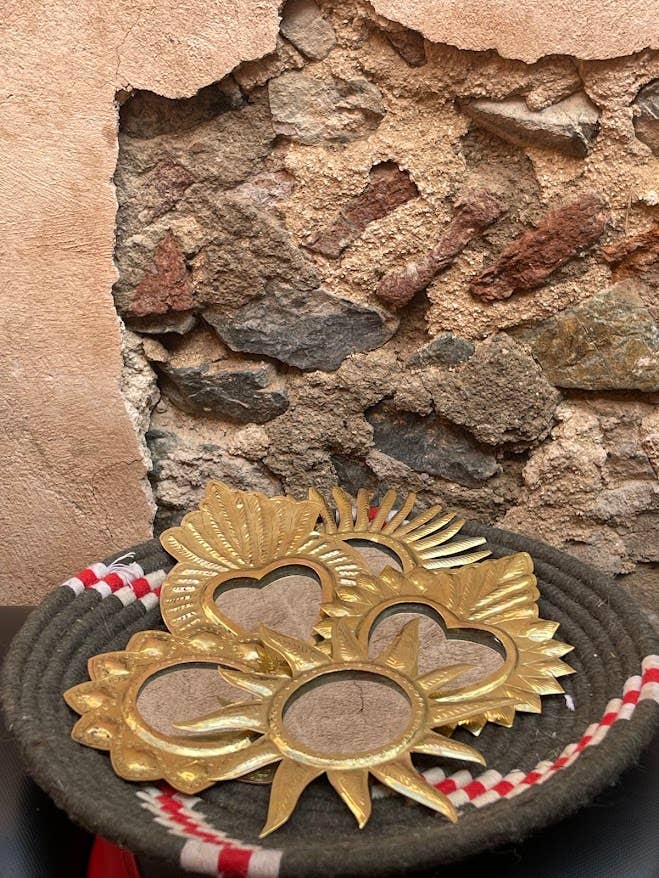 Chaque pièce est unique, ce qui la rend encore plus spéciale. Avec un diamètre moyen de 15 cm et une couleur dorée chatoyante, ce miroir ajoute un élément rayonnant à n'importe quel espace.