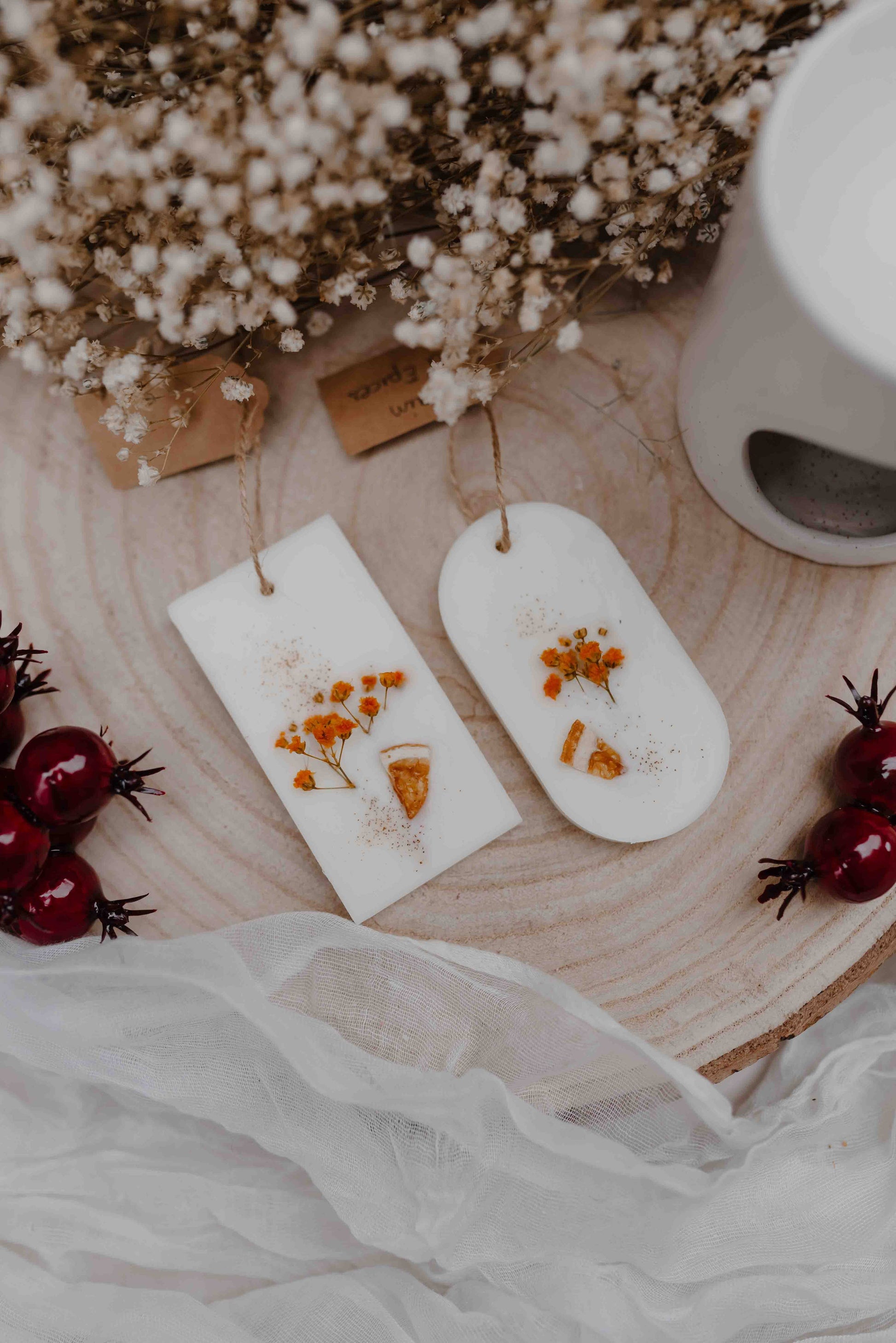 Tablette de cire parfumée ( ou fondant ) à suspendre dans son dressing pour parfumer délicatement son linge, ou à faire fondre dans un brûleur ( 10h de parfum/tablette ).
