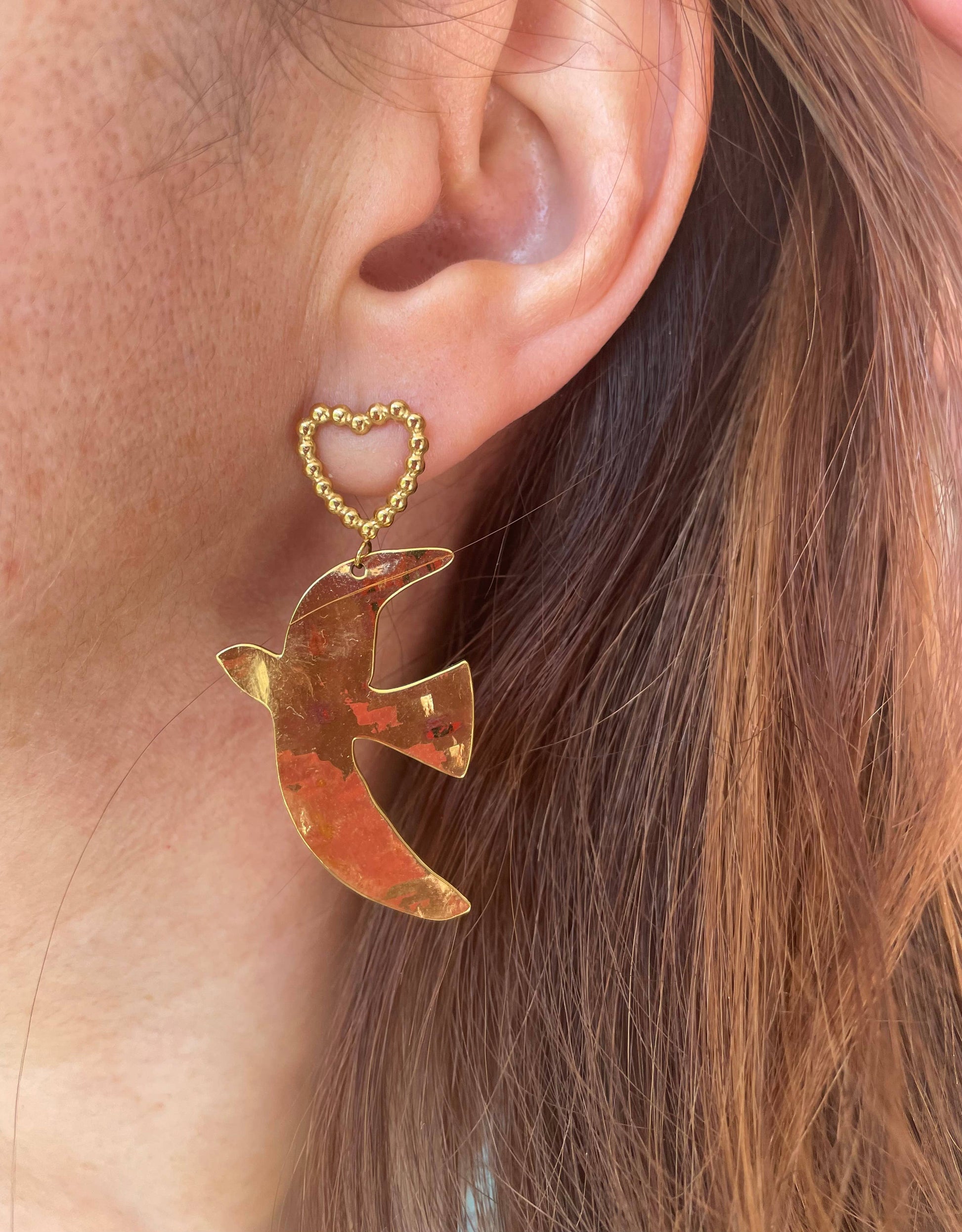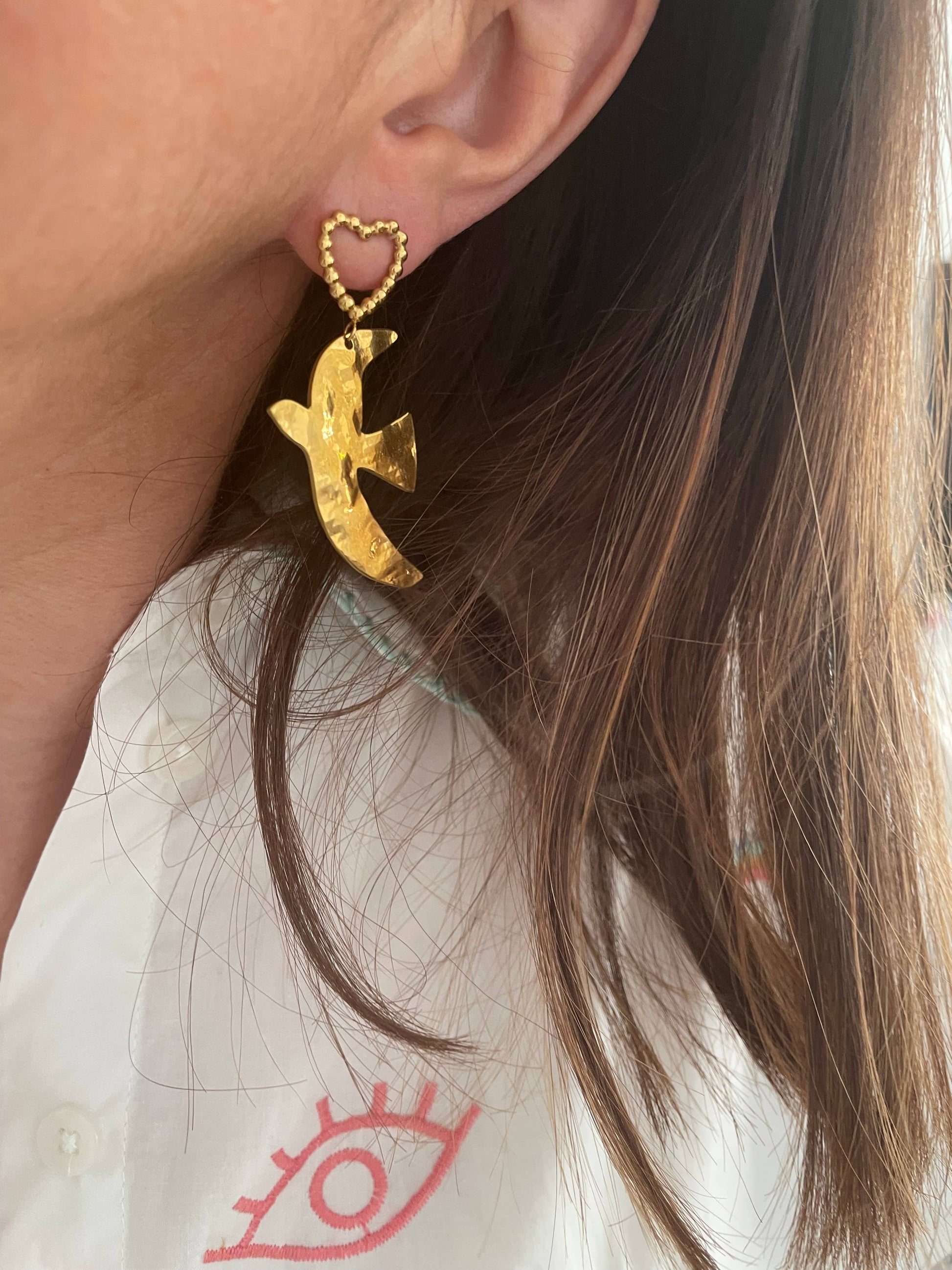 clou cœur à boules - pendentif oiseau