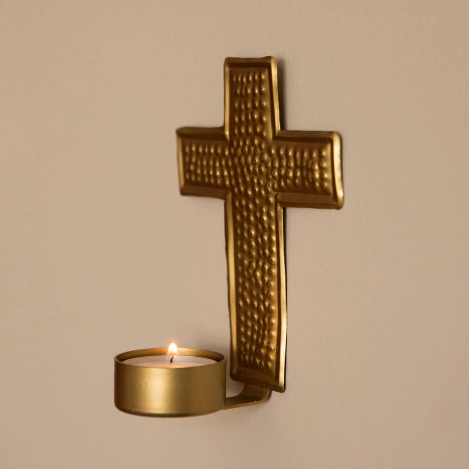 Porte-bougie mural en forme de croix pour bougies chauffe-plat