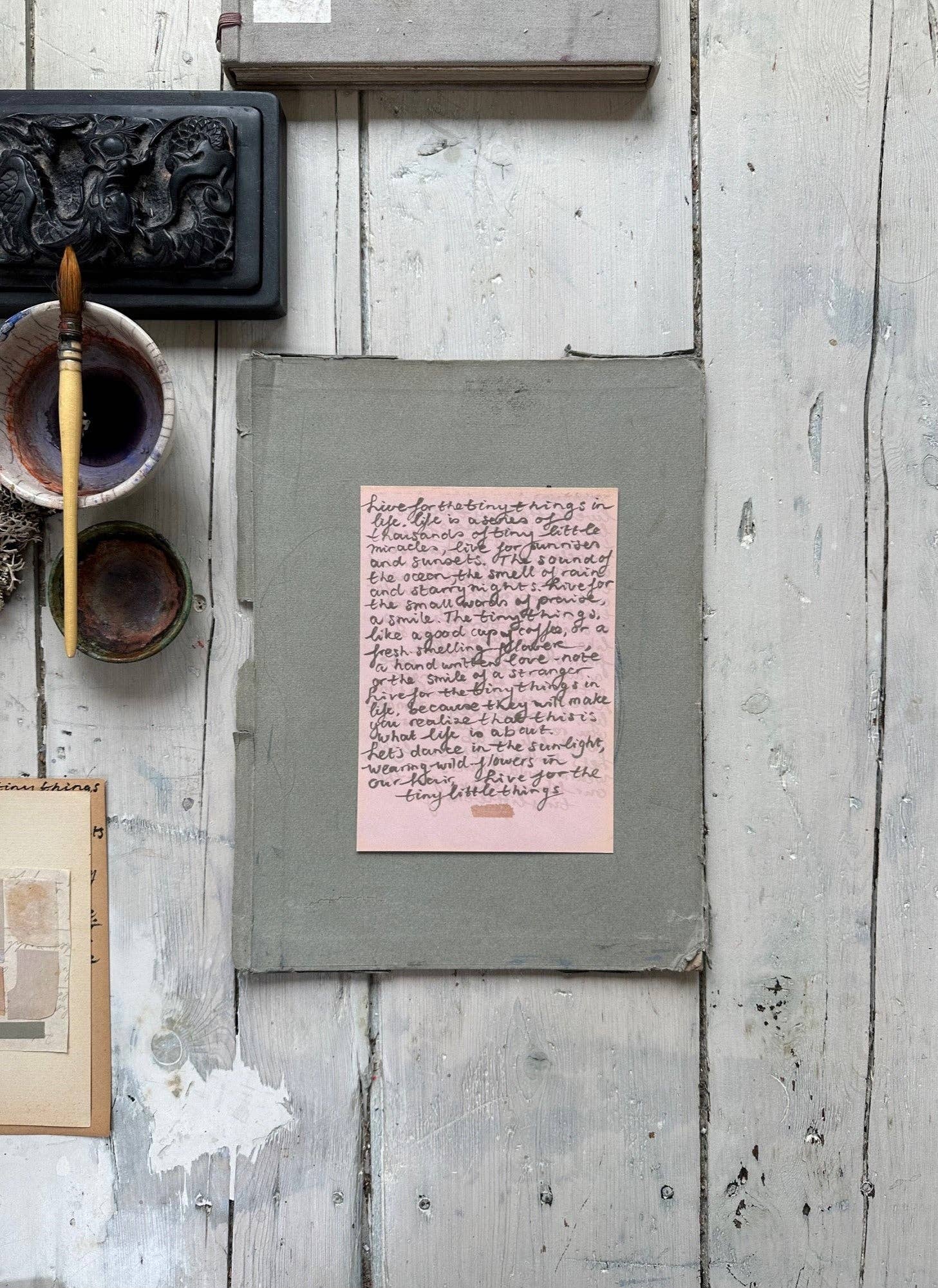 Vis pour les petites choses de la vie. La vie est une série de milliers de petits miracles. Vis pour les levers et couchers de soleil. Le son de l'océan, l'odeur de la pluie et les nuits étoilées. Vis pour les petits mots de louange, un sourire. Les petites choses comme une bonne tasse de café ou une fleur fraîchement parfumée, un mot d'amour écrit à la main ou le sourire d'un inconnu. Vis pour les petites choses de la vie, car elles te feront réaliser que c'est ça la vie. Dansons au soleil, portant des fleurs sauvages dans nos cheveux. Vis pour les petites choses.